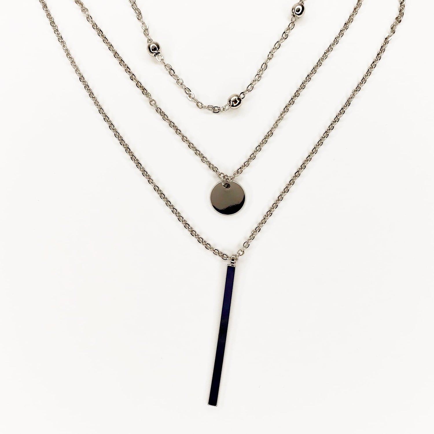 This necklace has three different designs all connected to one chain. This makes it easy to wear and avoids any tangling of the chains while wearing.